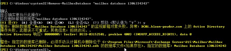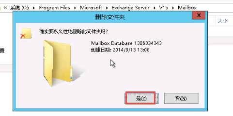 待数据库上的邮箱全部移出后,删除Exchange 2010上的邮箱数据库。