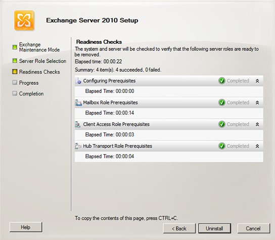 在服务器上卸载Exchange 2010