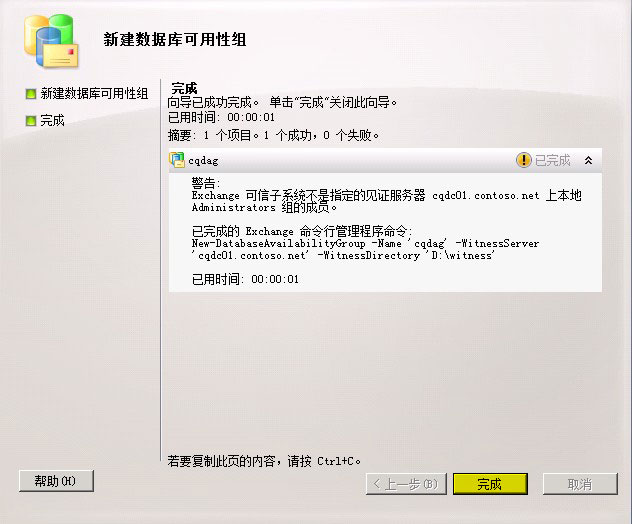 单击完成后,那么cqexdag01和cqexdag02这两台邮箱服务器也就成为了cqdag这个数据库高可用性组的成员
