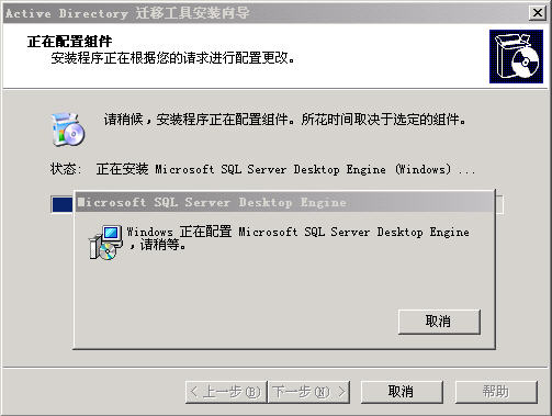 ADMT3.0需要数据库支持,无论是采用SQL还是WMSDE,默认都会在本地安装WMSDE。