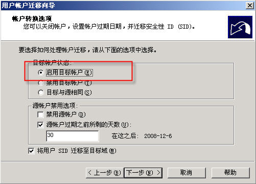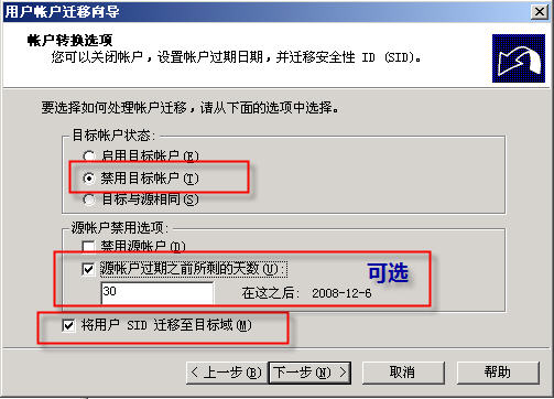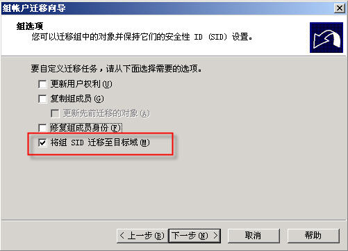 关闭SID Filter, 默认在Windows 2000 SP4以上及Windows2003启用了SID Filter, 在迁移过程中,为了让用户可以正常原有资源,我们需要迁移SID Histrory.