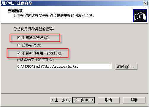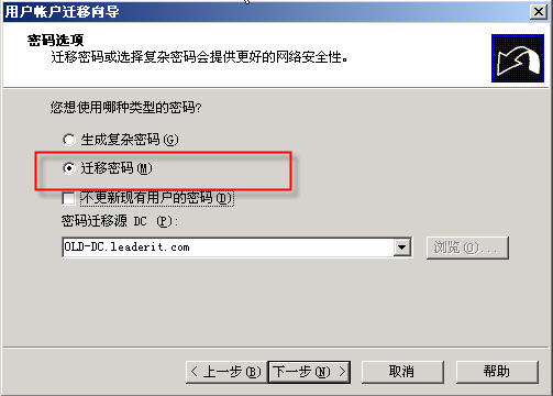 1.迁移所有帐号,选择不更新现有用户密码,生成复杂密码
