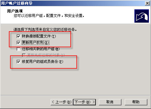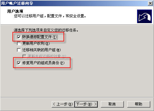 转换漫游配置文件,更新用户权利,修复用户的组成员身份