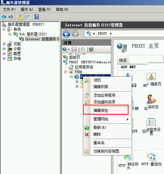 - 等待安装完成后,需要先打开IIS管理器,在站点上右键点击编辑绑定