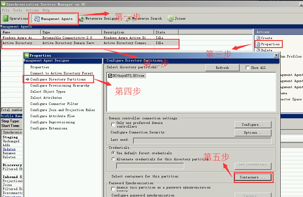 打开C:\Program Files\Windows Azure Active Directory Sync\SYNCBUS\Synchronization Service\UIShell文件夹中打开miisclient.exe