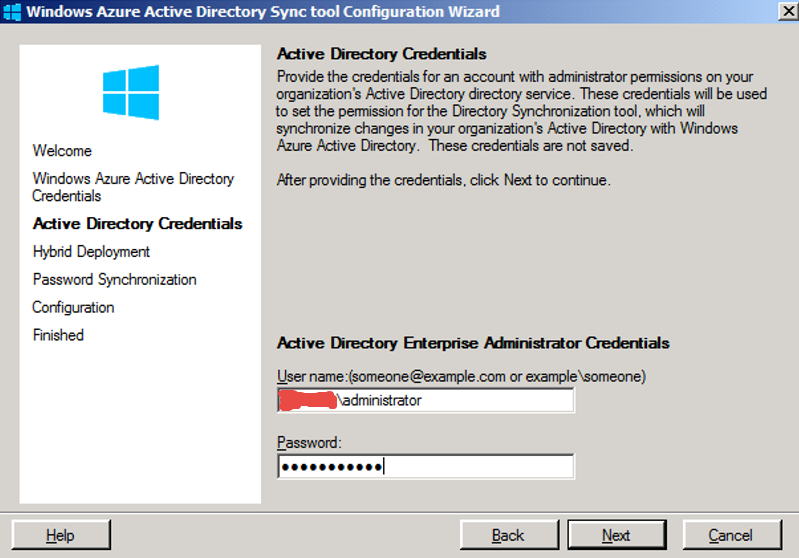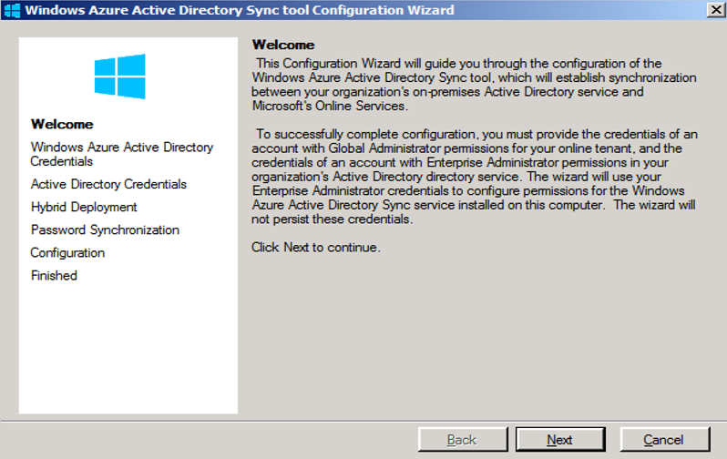 在混合部署中,需要同步本地活动目录信息到云端,如下步骤是配置过程。
