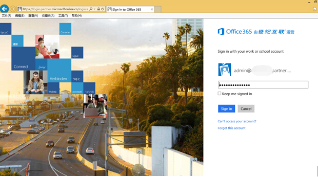 - 打开IE,输入https://login.partner.microsoftonline.cn进入Office 365登录页面。输入用户及密码点击sign in