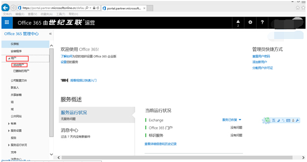 - 进入Office 365管理员页面,点击用户——活动用户