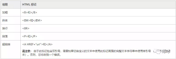 回到我们最初的话题,这样一个退信内容能不能抓取AD里的用户属性告知发件人呢,比如说收件人的电话号码,办公地点?答案是不可以,Text内容只支持简单的html标签,比入字体(粗体、斜体),分段,超链接等,无法创建AD链接对象进行引用查询。
