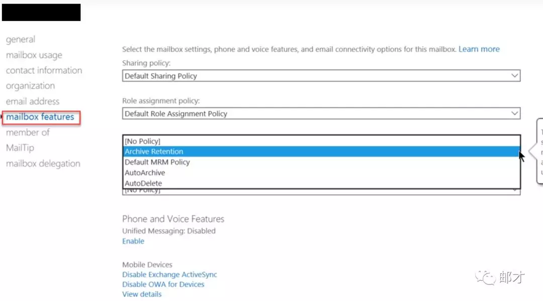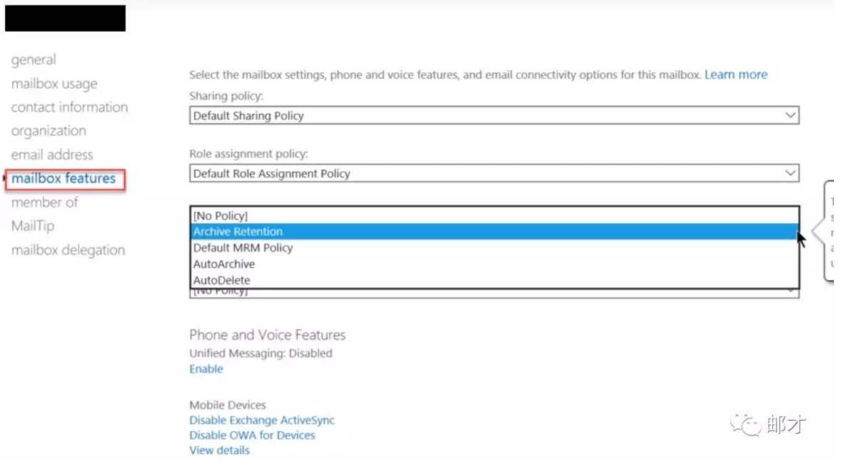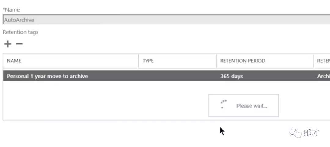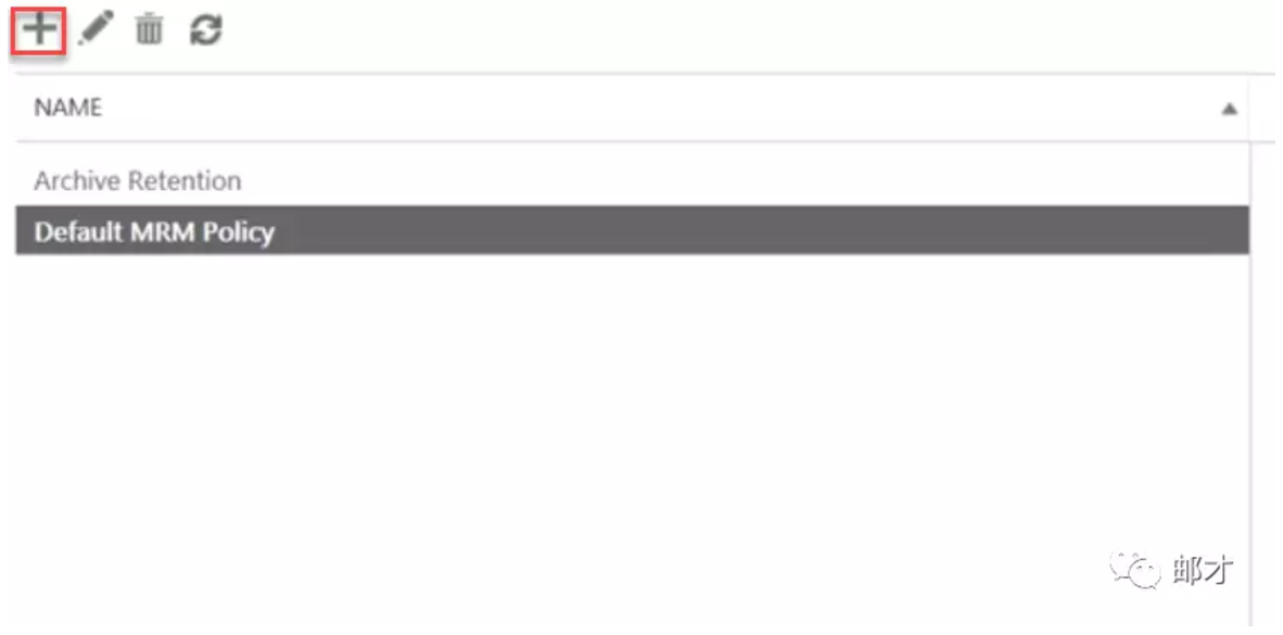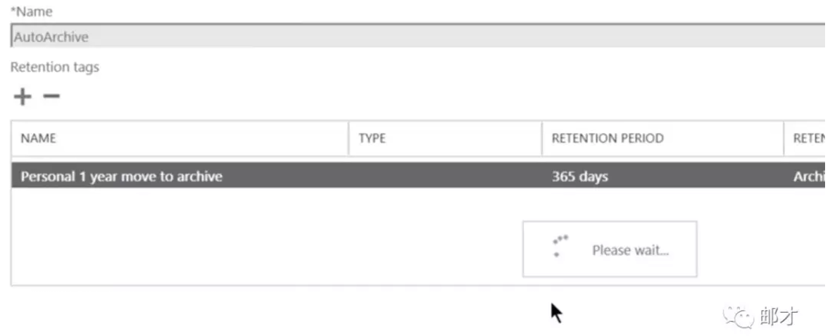 比如说我们新建一个自动归档策略,对于超过一年的邮件进行移入归档目录的操作。进入ECP的“合规性管理”–>“保留策略”,单击加号以新建保留策略。