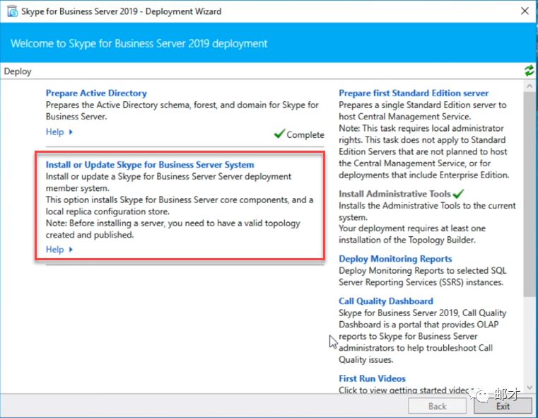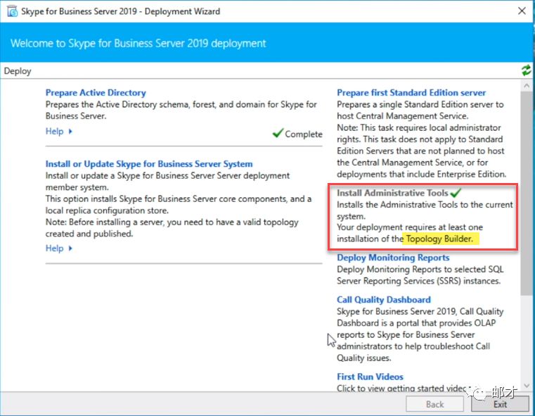 AD准备完成后,可以安装管理工具了,SfB的一部分管理工具是在主程序安装之前准备的,没错,我说的就是拓扑生成器。