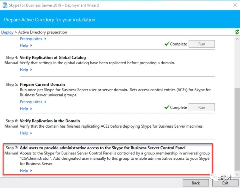 按步骤完成Schema扩展,森林扩展以及域扩展…准备条件的最后一步是将安装用户(如果是当前用户的话即为域管理员)加到CSAdministrators组中,这步由于没有检查框很多童鞋会遗漏。
