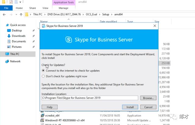 安装完成之后,SfB2019的Setup程序就可以运行了,我们选择一个安装路径,点击安装(Install)。