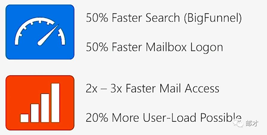 从技术指标上来说,在启用BigFunnel全闪存技术的Exchange Online产品中,Outlook.com的平均搜索速度是600ms,Office 365的平均搜索速度是800ms,因此Exchange 2019本地化的BigFunnel技术更值得期待,因为我们有独享闪存及更快的LAN网络,不是么?