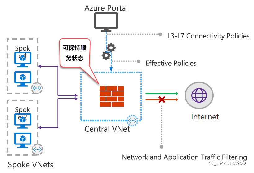 Azure的防火墙也是云上的SaaS服务,可保护Azure虚拟网络资源,它是一个有状态的防火墙,具有内置的高可用性和不受限制的伸缩性。