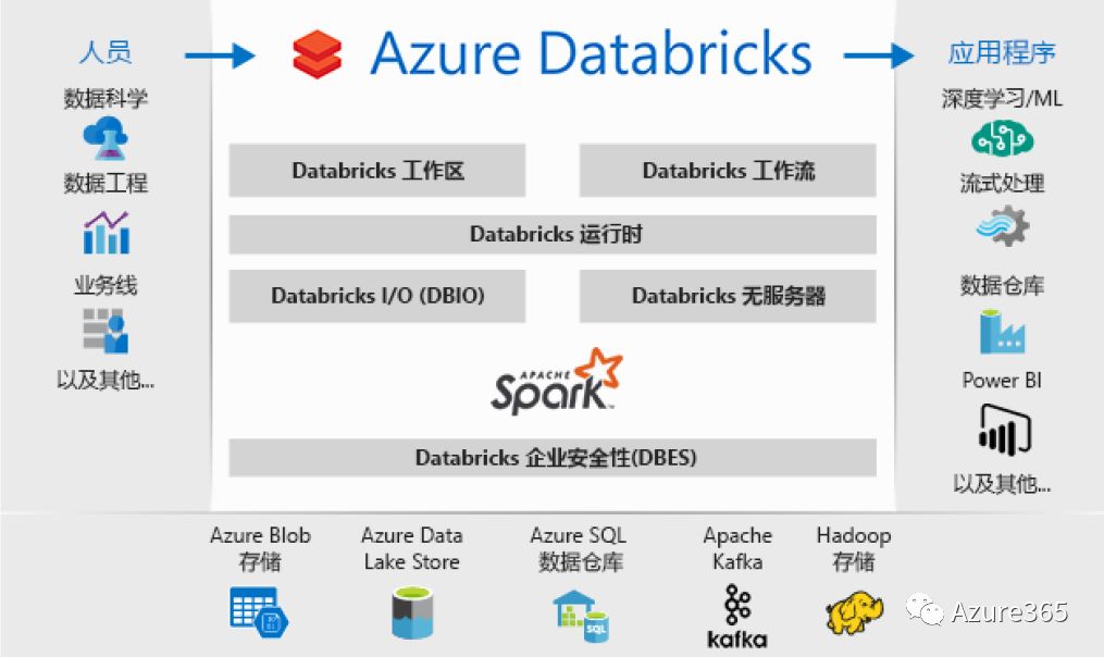 与Azure流和分析服务类似的,但只在国际版才提供的服务叫做Azure Databricks,由于国内版没有此项服务这里就不做过多展开,以下是它的数据流向图。