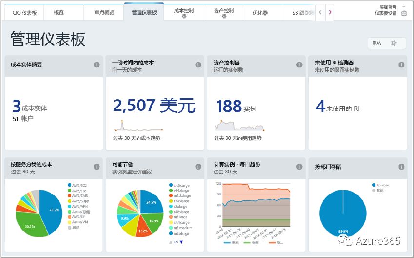 当公司使用了不止一家云厂商的服务时,Cloudyn(微软子公司)许可的Azure成本管理可以跟踪Azure资源和其他云提供商(包括AWS和谷歌)的云使用量和开支。便于理解的仪表盘报告也有助于成本分配和Showback/Chargeback。成本管理通过确定可供事后管理和调整未充分利用的资源,帮助优化云支出。