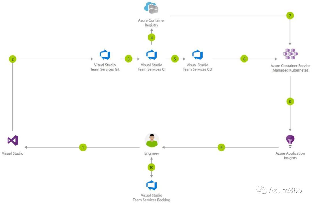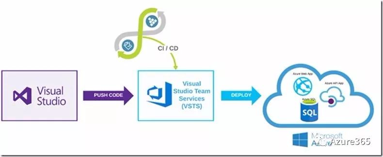 Azure上的敏捷开发上使用的是Visual Studio Team Service(VSTS),相当于是一个VS的web版本。开发人员可以很方便的将本地VS的代码推送到Azure上,VSTS可以集成各种CI/CD工具,当然也可以使用原生的VSTS管道,经过几轮迭代后,满足上线要求的部署到Azure应用中。