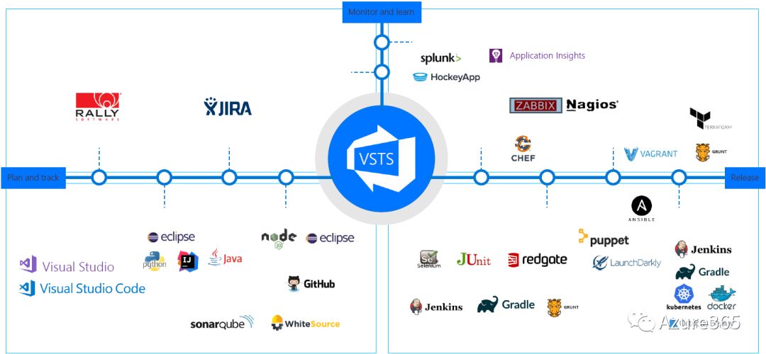 VSTS的生态圈几乎涵盖了当下所有主流的CI/CD组件,从计划与跟踪到测试与发布,只要开放了API,完全不用担心集成性的问题。