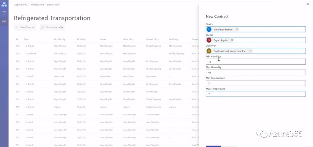 既然是云上的开发工具,自然必须具备协同功能。尤其是可能牵涉多家企业的区块链应用。ABW支持使用AD登录、链上数据与链下存储同步、区块链与应用程序集成。例如在一个牵涉冷链管理的物流运输过程中,我们可以定义某一环节的控温负责人,关联设备组,以及作为观测者的合作单位或个人。
