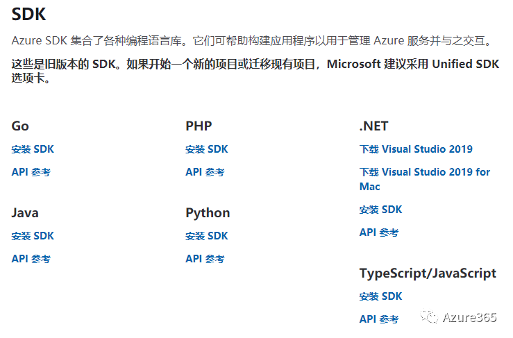下一个工具是Azure SDK,安装Azure SDK可额外获取一套模板和工具,支持.NET,Java,Node,Python,Ruby,PHP,Android,IOS,JavaScript,Swift和Windows。