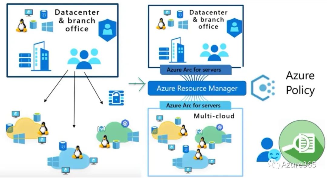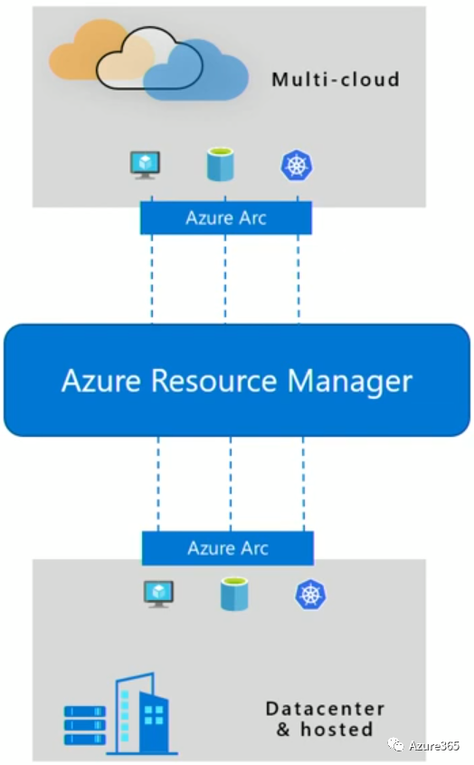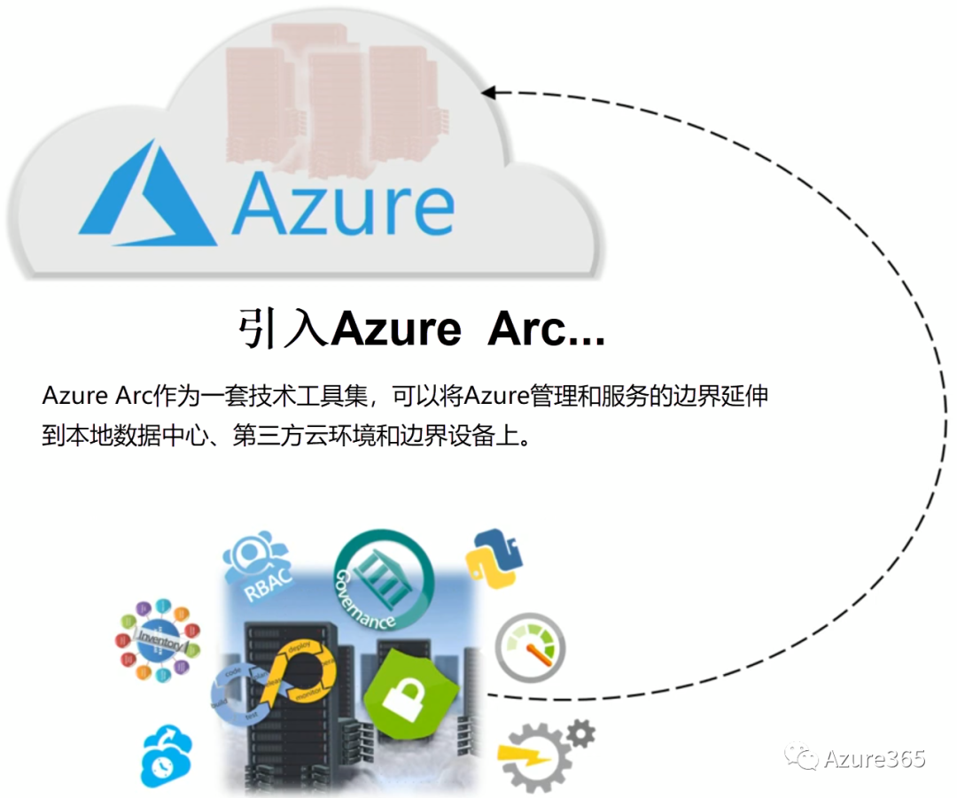 这里Azure Arc可以将一些基础的Azure服务和管理单元无缝延伸到其他任意环境和架构中。包括: