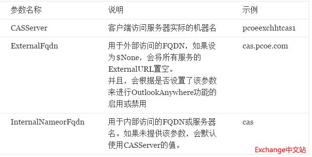 在安装Exchange 2010 CAS服务器角色时,安装程序会询问该服务器在Internet上被访问时使用的FQDN名称,并且会自动使用该名称为CAS上所有的基于IIS的服务配置ExternalURL属性