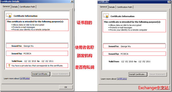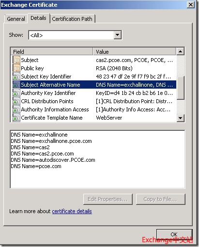 在Exchange Server 2007/2010安装时,安装程序会自动为Exchange服务器颁发一个自签名证书,这张证书将用于Exchange组织内部的服务器通讯。