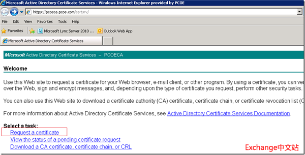 使用Windows服务器自带的证书颁发机构,并且在配置时选择“基于Web分发”的安装方式,就可以利用IE客户端向证书颁发机构提交申请并获取证书。